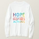 Dieses lebendige und auffällige T - Shirt-Design zeichnet sich durch die kraftvolle Botschaft "Hope Inspiriere Actions" in fett gedruckten, mehrfarbigen Buchstaben aus. Der abstrakte Hintergrund fügt ein dynamisches und künstlerisches Element hinzu und macht es zu einem visuell auffälligen Element. Das Design ist perfekt für jeden, der an den transformativen Power der Hoffnung und die Wichtigkeit des Handelns glaubt.