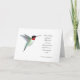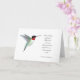 Einfache Karte mit einem rubingebeutelten Hummingbird im Flug und dem ersten Stanza des berühmten Gedichts von Emily Dickinson. Die Innenseite wird für die eigene handgeschriebene Nachricht leer verlassen.