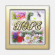 Magnet mit dem Wort HOPE geschrieben auf einem Strauß von Blume mit goldfarbenem Rahmen Es ist künstlerisch geschaffen.