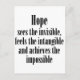 Schönes, fast poetisches Sprichwort über die Qualitäten der Hoffnung: "Die Hoffnung sieht das Unsichtbare, fühlt das Unfassbare und erreicht das Unmögliche."