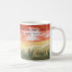 Diese Tasse hat ein kraftvolles Bild eines Glatzenadlers, der gegen einen schönen roten und gelben Himmel über Bergen und grünen Bäumen aufsteigt, und ein Bibelverse (Isaiah 40:31): Diejenigen, die auf den Herrn hoffen, werden ihre Kraft erneuern. Sie werden wie Adler auf Flügeln steigen.