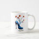 Personalisierte Tasse des Schuhes der hohen Ferse mit einer digitalen Illustration eines blauen Schuhes mit den Blumen, die aus ihm in der blauen und vibrierenden Orange heraus, kundengerechten Namen kennzeichnend wachsen. Chicentwurf mit einer Klemme Spaß für ein stilvolles Fashionistamädchen.
