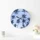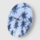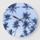 Hohe Palmen, klarer blauer Himmel. Große Wanduhr