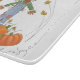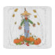 Ein lustiger und farbenfroher Wasserfarben Stift und Tinte zeichnend von einer glücklichen Kürbiscreme, die ein Stück Orangenkürbis und andere Herbstfrüchte und Veggies schützt, inspirierte in diesem Herbst dekoratives Glas-Schneidebrett. Original-Kunstwerk. Copyright Leah Wiedemer