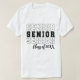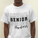 Feiern Sie Ihren akademischen Meilenstein mit diesem Abschluss-T - Shirt mit dem Wort "Senior" in einem fesselnden Blod gestapelte Schriftart. Fügen Sie ein Jahr hinzu, um dieses Tee zu einem zeitlosen Sake für den stolzen Absolventen zu machen.