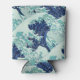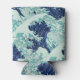 Das ist ein Muster von blauen, cyan- und aquamarinischen Wellen mit Schaum und Splash, basierend auf der Arbeit von Katsushika Hokusai (1760-1849).