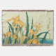 Yellow Irises und Grasshopper - Dieses Bild basiert auf einem Vintagen antiken Katsushika Hokusai-Kunstdruck aus den 1820er Jahren. Das Gemälde zeigt einen Grashüpfer in einem Garten mit gelben Iris-Blume. Grafik asianisches japanisches Design.
