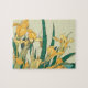Yellow Irises und Grasshopper - Dieses Bild basiert auf einem Vintagen antiken Katsushika Hokusai-Kunstdruck aus den 1820er Jahren. Das Gemälde zeigt einen Grashüpfer in einem Garten mit gelben Iris-Blume. Grafik asianisches japanisches Design.