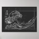 Hokusai Meets Fibonacci linear schwarz-weiß Poster