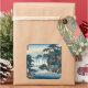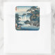 Hokusai Ukiyo-e Japanese Waterfall Landscape Blue Quadratischer Aufkleber