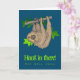Ein niedlicher Schwung, um jemanden zu jubeln, der krank ist. Dieser lustige braune Faultier klammert sich an einen Ast mit Blätter und hängt verkehrt herum. Die Nachricht lautet: Bleib da rein! Geht es bald gut. Im Inneren gibt es eine Nachricht, die Sie leicht ändern können / anpassen, wenn Sie möchten.
