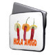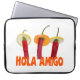 Hola Amigo. Drei Paprikaschoten mit heißem Chili, drei Amigos in Sombreros. Text Hola Amigo. Hübsche Drucke, Geschenke und Shirts für Spaß und gute Laune.