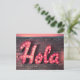 Hola Spanisch hallo roten Neonleuchten Schilder mit einem Backstein Hintergrund perfekt, um hallo im Stil zu sagen.