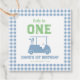 First birthday golf theme "Hole in One " with gold cart and light blue checkered plaid pattern.