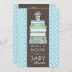 Eine entzückende kleine Eule wird auf einem Stapel Büchern in den Schatten von Blauem und von Grünem auf dieser niedlichen Einladung für eine Holen-einBookbabydusche gehockt. Text auf der Rückseite hat Beispieltext für das Fragen der Gäste, um die Geschichte ihre Lieblingskinder auch zu holen, um Mama-zu-sein auf dem Herstellen der Bibliothek des Babys anzustellen. Im modischen Braun und im Babyblau mit Tupfenmusterhintergrund, ist dieser reizende Entwurf sicher, jeder neuen Mama zu gefallen. Auch sind die Buchzeichenaufkleber verfügbar, zum in der Einladung für jedes der Gäste mit einzuschließen, ihre Buchgeschenke zu unterzeichnen und zu beschriften.