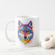 Farbenfrohe Tasse mit einem kunstvollen Wolf-Motiv im Aquarell-Stil. Ein echtes Highlight von Anja und Sarah Designs für jeden Kaffeetisch.