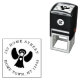 Ein rundes personalisiertes, selbsteindrucksvolles Briefmarke-Design mit einem Engel, umgeben von Ihren Adressdetails. Ideal, um eine zusätzliche handgestempelte Touch zu Ihren Urlaubskarten hinzuzufügen.