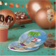 Niedlicher Sandmann am Strand mit Palmen und Weihnachtsgeschenken und -dekorationen