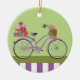 Ein lustiges Fahrraddesign für die Feriensaison! Ein rotes Fahrrad mit einem perfekten kleinen Baum, Kerzen und einem Geschenk!
