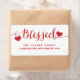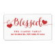 Holiday Blessings Red White | Address Label für passende Urlaubsfotokarten in unserem Shop. Elke Clarke © Andere Stile und Farben verfügbar unter www.zazzle.com/epclarke. Roter Script-Schriftart mit dem Wort "gesegnet" mit Herzen.