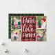 Die rustikale und festliche Urlaubskarte verfügt über vier Fotos in einer Collage-Layout, mit "Glaube, Liebe, Familie" in weißer Hand gezeichnete Typografie auf einem handbemalten, rot-schwarzen Büffel karierten Hintergrund. Personalisieren Sie Ihre Namen unten, und fügen Sie ein zusätzliches Foto auf der Rückseite auf einem grünen karierten gemusterten Hintergrund.