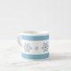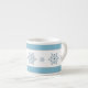 Diese Espresso-Tasse zeigt sich in einem hübschen Bachblau auf Weiß mit weichen, grau Akzenten Streifen mit Bildern von verschiedenen Größen blauen Schneeflocken durch die Mitte dieser Tasse. Passen Sie dieses Objekt an oder kaufen Sie es wie geplant.