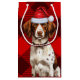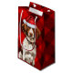 Hundefreunde werden diese niedliche und lustige Geschenktüte mit einem zauberhaften spanischen Hund mit festlichen Accessoires auf einem roten Büffel-karierte genießen.