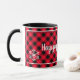 Happy Holidays Tasse Die Tasse Holiday coffee wird hier mit einem festlichen Weihnachtsbüffel kariert mit Schneeflocken gezeigt. Passen Sie dieses Objekt an oder kaufen Sie, wie es ist. Börsenbild freepik.com