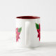 Die Tasse des Kaffees wird hier mit einem festlichen roten Poinsettias-Druck gezeigt. Maroon Farbe in Passen Sie dieses Objekt an oder kaufen Sie, wie es ist. Bild