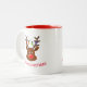 Die Tasse des Weihnachtskaffees wird hier mit einem festlichen Rudolph-Druck gezeigt. Passen Sie dieses Objekt an oder kaufen Sie, wie es ist. Bild