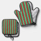 Holiday Colours Green Red White Stripes Ofenhandschuh & Topflappen-Set
