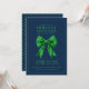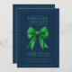Holiday Dinner Party Green Satin Bow Navy Einladung