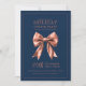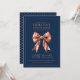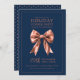 Holiday Dinner Party Rose Gold Satin Bow Navy Blue Einladung