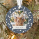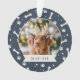 Mit unserem festlichen Foto-Ornament geben Sie Ihrem Furry-Freund zu Weihnachten einen besonderen Platz auf dem Baum. Niedliches Design mit dem Namen Ihres Haustieres auf einem marineblauen Hintergrund mit Pfosten und Hundeknochen.