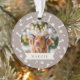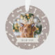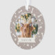 Mit unserem festlichen Foto-Ornament geben Sie Ihrem Furry-Freund zu Weihnachten einen besonderen Platz auf dem Baum. Niedliches Design mit dem Namen Ihres Haustieres, auf einem neutralen taupe Hintergrund mit Pfosten und Hundeknochen.