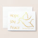Wünschen Sie Familie und Freunden ein einfaches Geschenk der Ruhe für den Urlaub mit einem eleganten Taube ein Foto gefaltet Grußkarte. Alle Formulierungen auf dieser Vorlage (einschließlich "Hope Joy Peace" auf der Vorderseite) ist einfach zu anpassen, sodass es für Weihnachten, New Years, Hanukkah und Rosh Hashanah geeignet. Die blaue, weiße und goldene Folie ist mit einer beklagenden Taube mit einem Olivenzweig, moderner Kalligraphie-Typografie und einem Foto Ihrer Wahl ausgestattet. Familie und Freunde werden Liebe mit dieser stilvollen personalisierten Karte zeigen.