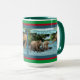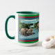 Schöne Holiday Elephant Scripture Tasse einer farbenfrohen, detailreichen Szene mit einem besorgten Mutterelefanten und einem geschwungenen Jungelefanten, der einem zaghaften Elefanten dabei hilft, einen klaren, blauen Fluss zu überqueren, der von üppig grünen Bäumen gesäumt ist. Diese Szene begleitet den Bibelverse Luke 6:31, "Auf andere, wie man sie auf sich nehmen lassen würde." Diese Tasse ist ein wunderbares Geschenk oder kann benutzt werden, um uns an das Wort Gottes zu erinnern.