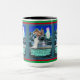Schöne Holiday Eskie und Angel Scripture Tasse einer farbenfrohen, detaillierten Winterszene mit einem verschmutzten, obdachlosen weißen amerikanischen Eskimo Hund, der in einem Schneesturm verloren ist. Der Hund ist auf abgefahrenen Knien und betet mit Pfoten zusammen zu einem herrlichen Angelic Himmlisch Being. Sie hat eine wunderschöne lila-weiße Aura um ihren Kopf und ist am Eingang einer charmanten Zuhause. Sie hat das eiserne Tor für den verlorenen Hund geöffnet und begrüßt den Hund mit ausgestreckten Händen durch das Tor. Sie hat diese Zuhause als neue Zuhause des Hundes bestätigt, indem sie sie mit blauen Glitzern aus dem Himmel umhüllte. Diese Szene begleitet den Bibelverse Matthew 6:33: "Aber seht zuerst nach dem Reich Gottes und nach Seiner Rechtschaffenheit; und all dies wird euch hinzugefügt werden." Diese Tasse ist ein wunderbares Geschenk oder kann benutzt werden, um uns an das Wort Gottes zu erinnern.