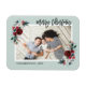 Individuelle magnetische Urlaubskarten mit einfachen Vorlagen zur Anpassung. Dieses festliche Design besticht durch eine elegante, florale Wasserfarbe in Rot, Grün und Bordeaux auf einem minten Hintergrund. Der Text lautet "Frohe Weihnachten" in einem modernen Kalligraphieskript-Schriftart. Personalisieren Sie es mit Ihren Fotos, dem Namen, dem Jahr oder anderen benutzerdefinierten Text. Verwenden Sie die Designwerkzeuge, um den Text zu bearbeiten, um mehr Fotos hinzuzufügen und um ein einzigartiges Urlaubsfoto zu erstellen.