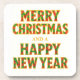 Fun festive coasters with "Merry Christmas and a Happy New Year "on it. Lettering in a cheery red and green geometric pattern outlined in gold. Makes a great hostess gift with holiday wine when getting together with family or friends.