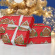 Cute, fun festive holiday wrapping paper with colorful gingerbread houses, designed with candy canes and Christmas trees on a red background. Great for wrapping Christmas gifts for all your friends and family with a personalized message.