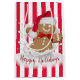 Weihnachten Lebkuchen Mann in weißer Milch spritzen mit Weihnachtsmann, der Zuckerrohr gestreift Hintergrund mit Happy Holidays Text. Text ist bearbeitbar.