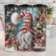 Diese festliche Abbildung zeigt einen zauberhaften Gnome mit einem langen grauen Bart, einem hohen, gestreiften Hut und einem gemütlichen roten Pullover. Das Gnom hält ein kleines Geschenkgeschenk. Die Szene ist Set in einem glitzernden Winterwunderland mit einem geschmückten Weihnachtsbaum und anderen Geschenken, die den fröhlichen und magischen Geist der Feriensaison einfangen.