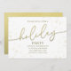 Set the tone for your holiday party with these elegant gold invitations, featuring modern calligraphy script and refined typography. Designed with a chic gold gradient, this card combines simple, minimalist style with timeless sophistication. Perfect for seasonal gatherings, it offers a basic invitation format that’s both versatile and stylish, making it easy to personalize while adding a touch of festive elegance to your holiday celebration.
