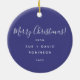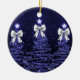 Holiday Greeting Navy Blue Christmas Trees Silver Keramik Ornament