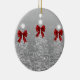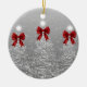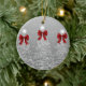 Holiday Greetings Silver Christmas Trees Red Bows Keramik Ornament