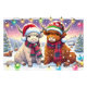 Holiday Highland Cows in Winter Wonderland Manga Fotodruck
