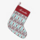 Einzigartiges und elegantes Weihnachts-Strumpf-Design mit einem modernen Kat-Muster in festlichen Feiertagen rot, winterliche Aqua und knusprig weiß. Personalisieren Sie mit einem Namen oder Initial an der Spitze in weißen Kalligraphie-Schrift Schrift auf einem Band von rot.