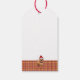 Ein karierter Geschenktag in Rot und Gold koordiniert mit unserer Geschenkverpackung und unserem Leseband für einen kompletten Blick auf das Weihnachtsgeschenk des australischen Terrier Hundes.