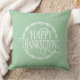 This holiday throw pillow is shown with a Happy Thanksgiving print.